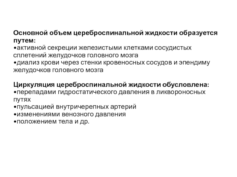 Слайд 12Основной объем цереброспинальной жидкости образуется путем: