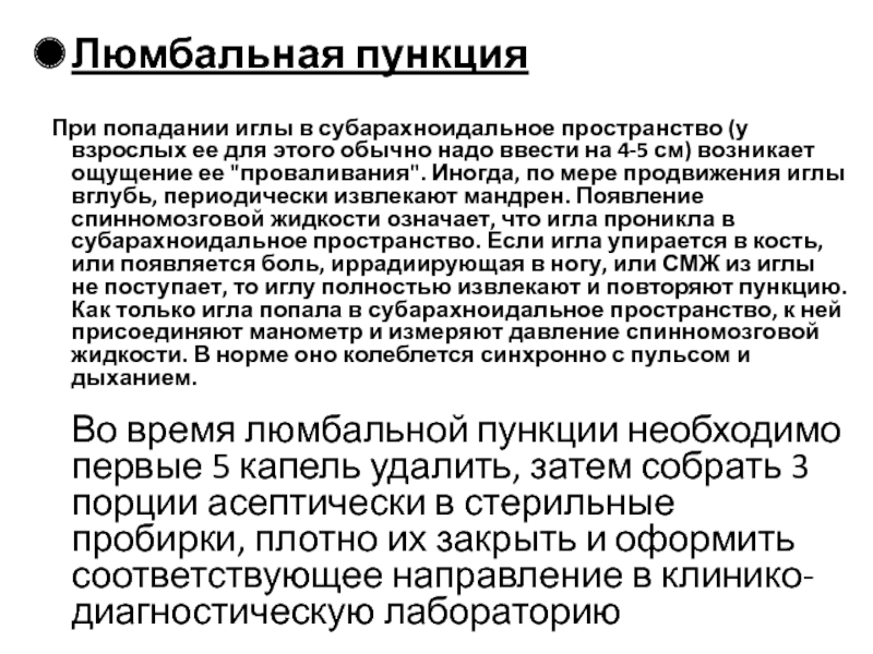 Слайд 17Люмбальная пункция