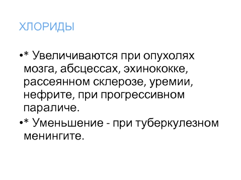 * Увеличиваются при опухолях мозга, абсцессах, эхинококке, рассеянном склерозе, уремии,