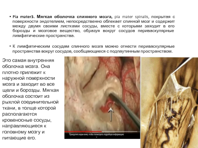 с поверхности эндотелием, непосредственно облекает спинной мозг и содержит между