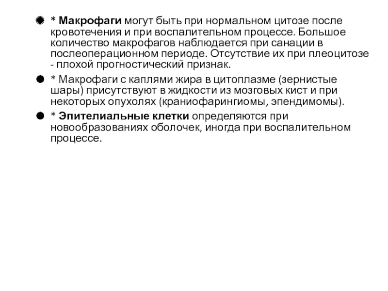 Слайд 22* Макрофаги могут быть при нормальном цитозе после кровотечения и при