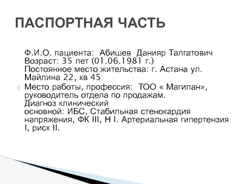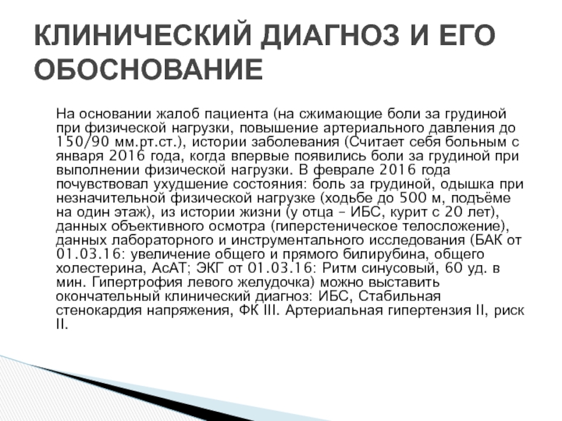 КЛИНИЧЕСКИЙ ДИАГНОЗ И ЕГО ОБОСНОВАНИЕ