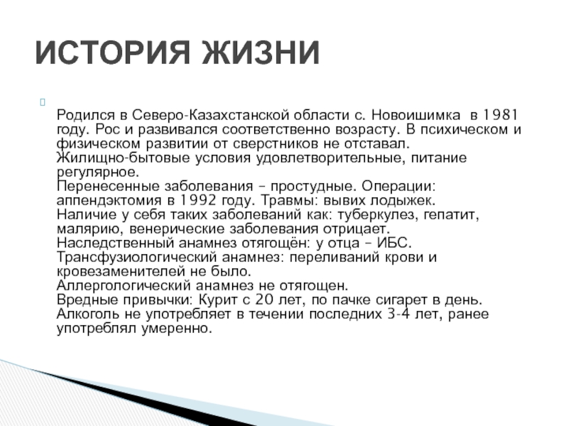 ИСТОРИЯ НАСТОЯЩЕГО ЗАБОЛЕВАНИЯ