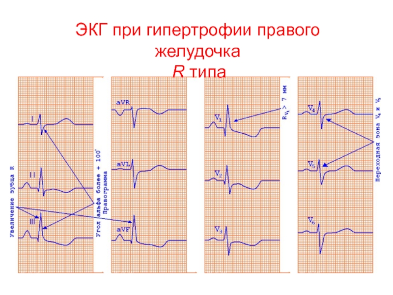 Слайд 15ЭКГ при гипертрофии правого желудочка