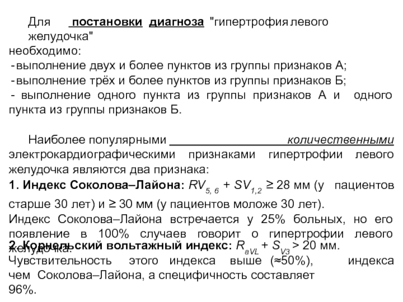 Слайд 11Для постановки диагноза "гипертрофия левого желудочка"