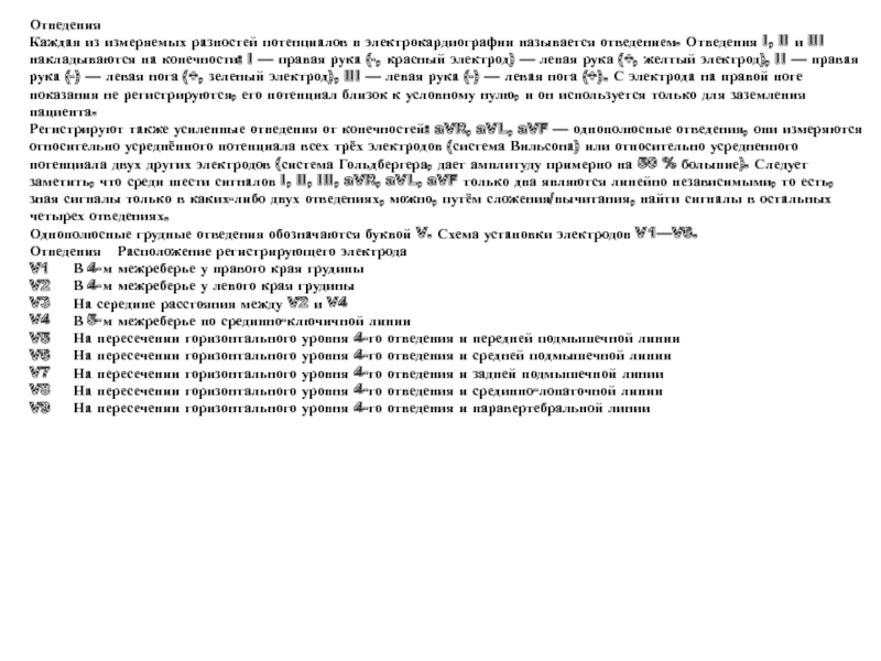 Каждая из измеряемых разностей потенциалов в электрокардиографии называется отведением. Отведения