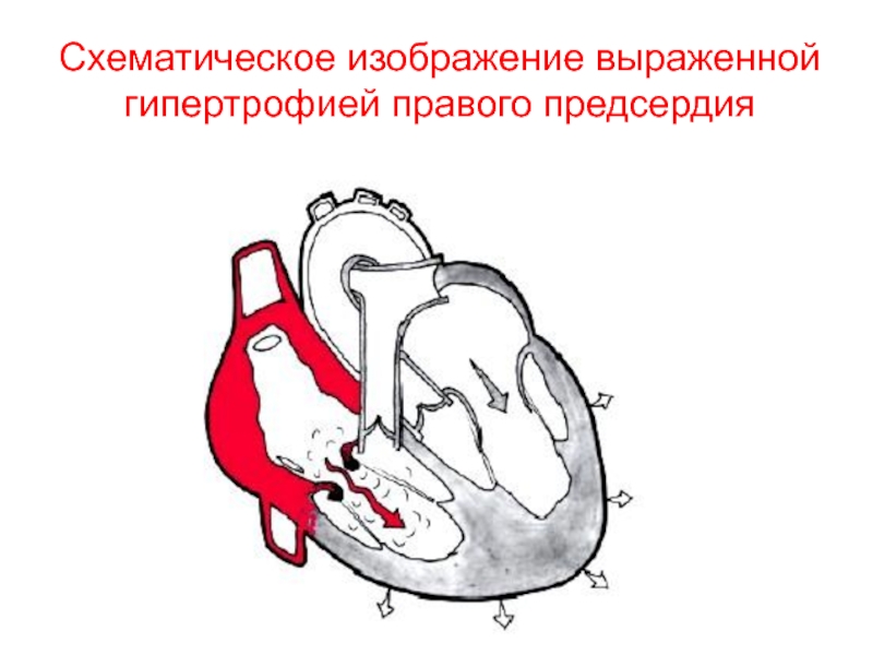 Слайд 13Схематическое изображение выраженной гипертрофией правого желудочка.