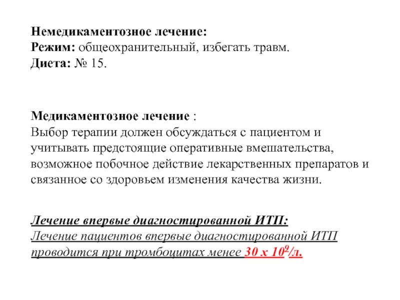 Лечение пациентов впервые диагностированной ИТП проводится при тромбоцитах менее 30 х 109/л.