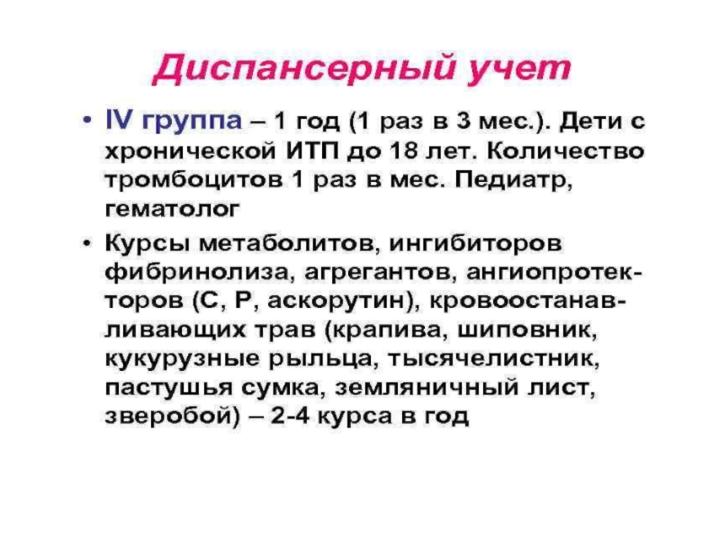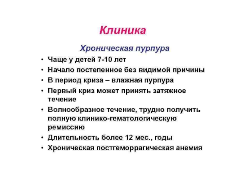 Тема: Идиопатическая тромбоцитопеническая пурпура
