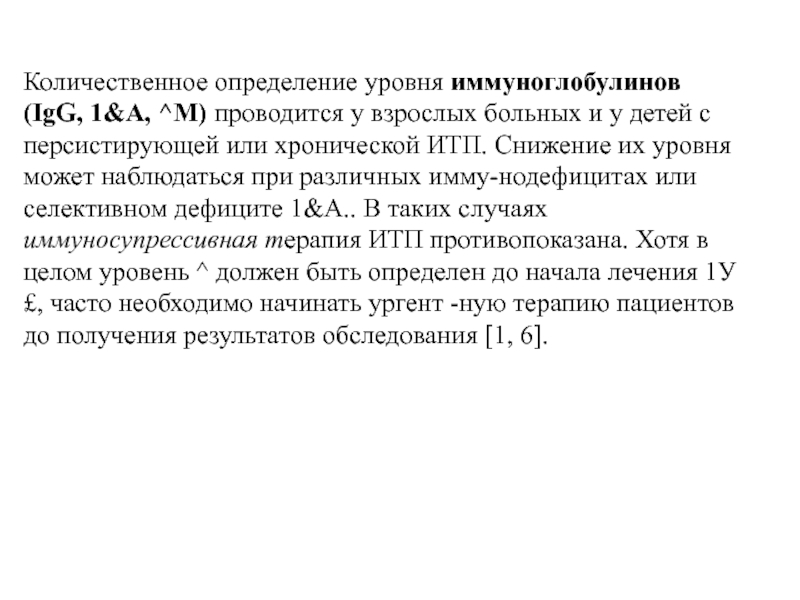 Слайд 24Количественное определение уровня иммуноглобулинов (IgG, 1&А, ^М) проводится у взрослых