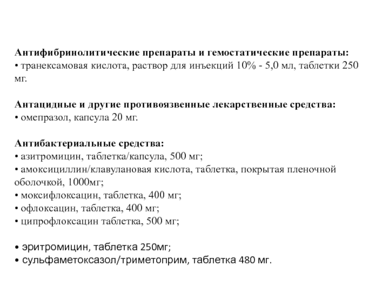 Слайд 38Антифибринолитические препараты и гемостатические препараты: