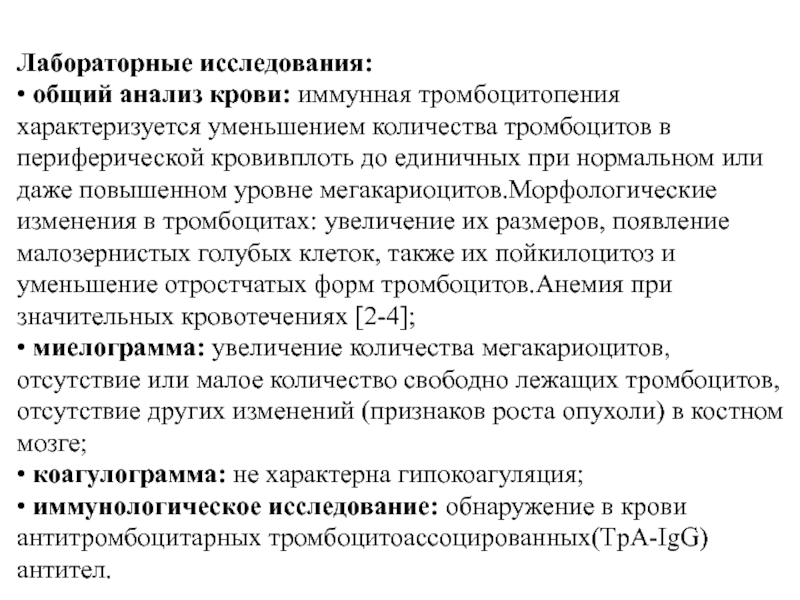 Слайд 22Лабораторные исследования, рекомендуемые для диагностики ИТП.