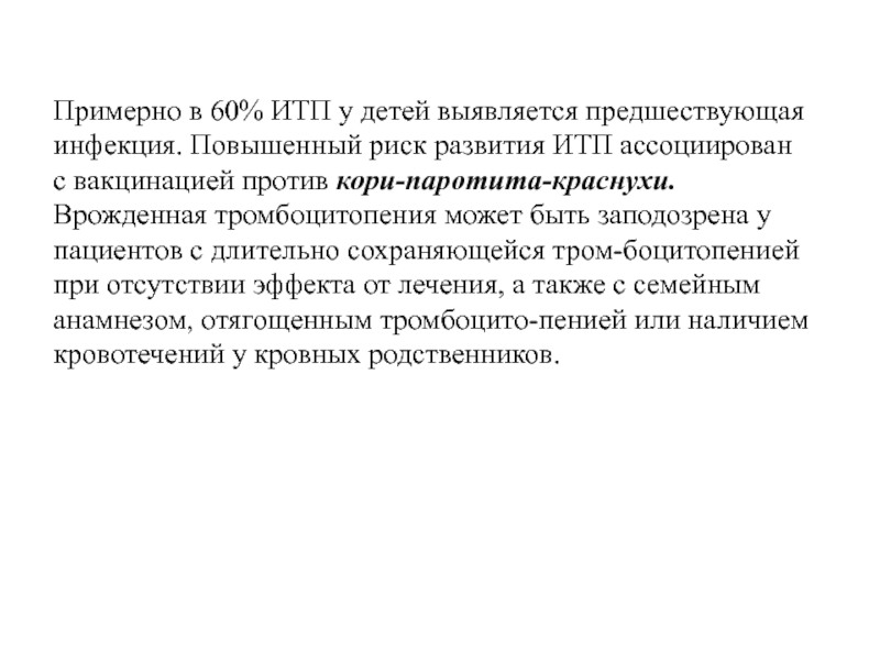 Слайд 4Примерно в 60% ИТП у детей выявляется предшествующая инфекция. Повышенный