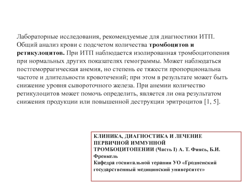 ТРОМБОЦИТОПЕНИИ (Часть I) А. Т. Фиясь, Б.И. Френкель