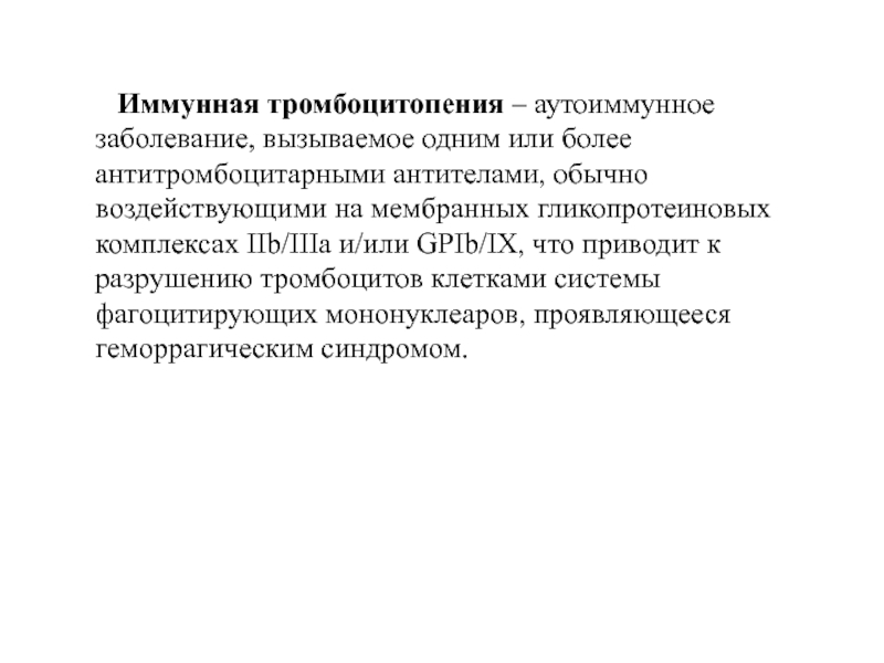 Слайд 2 Иммунная тромбоцитопения – аутоиммунное заболевание, вызываемое одним или