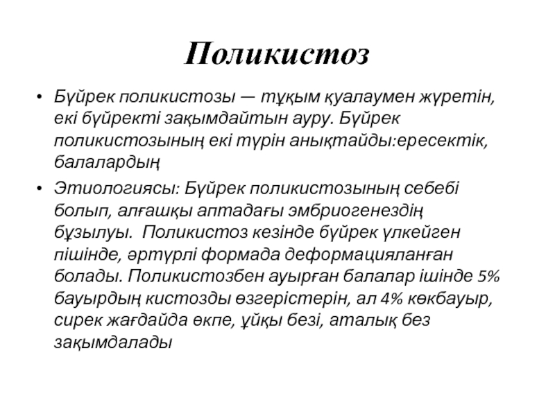 Бүйрек поликистозы — тұқым қуалаумен жүретін, екі бүйректі зақымдайтын ауру.