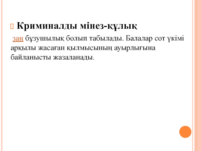заң бұзушылық болып табылады. Балалар сот үкімі арқылы жасаған қылмысының