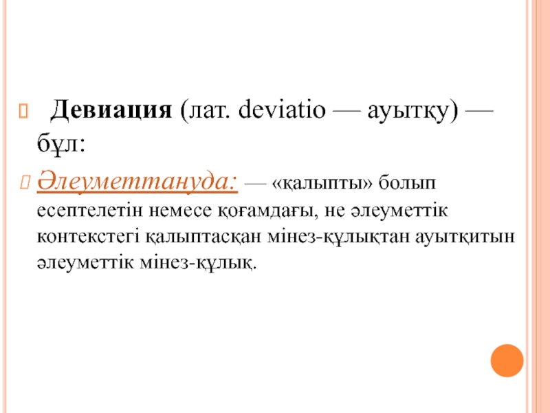 Слайд 3 Девиация (лат. deviatio — ауытқу) — бұл: