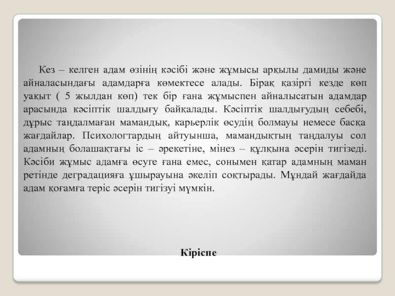 КіріспеКез – келген адам өзінің кәсібі және жұмысы арқылы дамиды және айналасындағы адамдарға көмектесе алады. Бірақ қазіргі