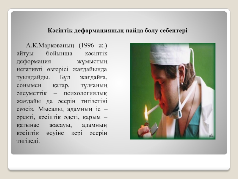 Слайд 6Кәсіптік деформацияның пайда болу себептері