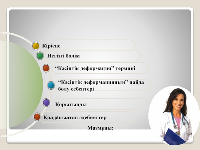 Мазмұны:Қолданылған әдебиеттерҚорытынды“Кәсіптік деформацияның” пайда болу себептеріНегізгі бөлімКіріспе“Кәсіптік деформация” термині