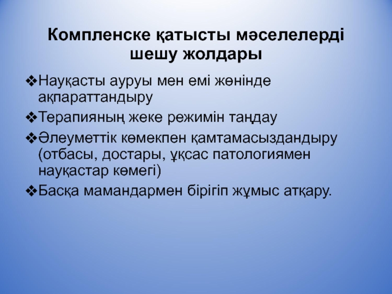 Слайд 12Компленске қатысты мәселелерді шешу жолдары