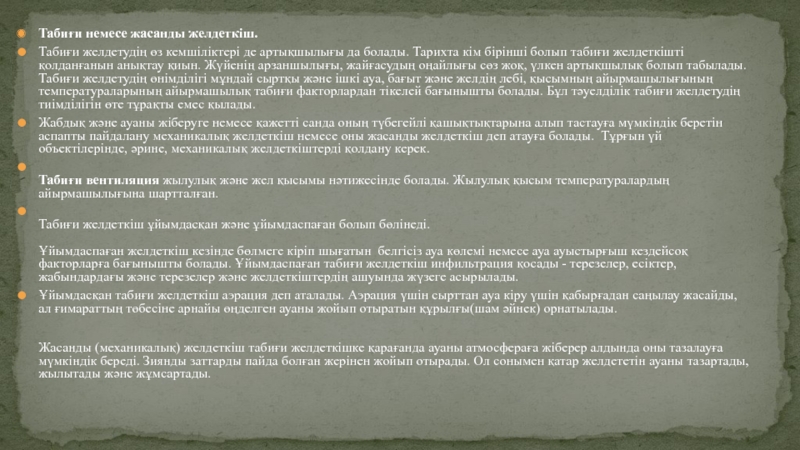 қойылатын гигиеналық талаптар. Ауруханалар мен стоматологиялық емханалардың бөлмелерінің желдетуі мен жылытуына қойлытын гигиеналық талаптар»Орындаған:Онгарбек Аят