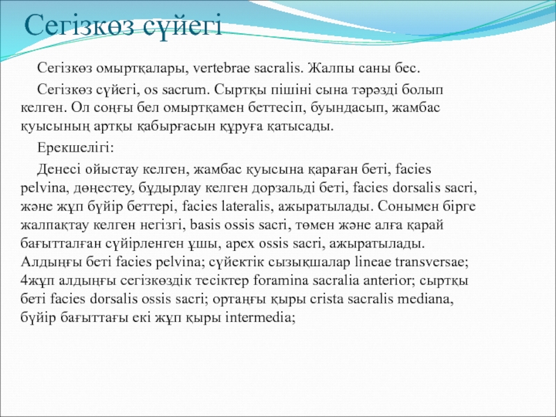 sacrum. Сыртқы пішіні сына тәрәзді болып келген. Ол соңғы бел