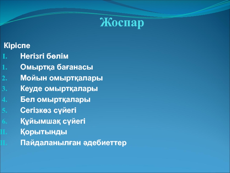 біздің қарастыратын тақырыбымыз омыртқа бағанасы болмақ.