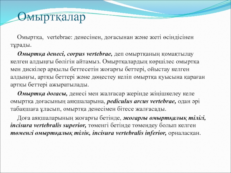 vertebrae, деп омыртқаның қомақтылау келген алдыңғы бөлігін айтамыз. Омыртқалардың көршілес