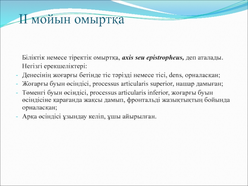 Мойын омыртқаларының жалпы көлемі бірінші, екінші омыртқалардан басқалары, кеуде омыртқаларына