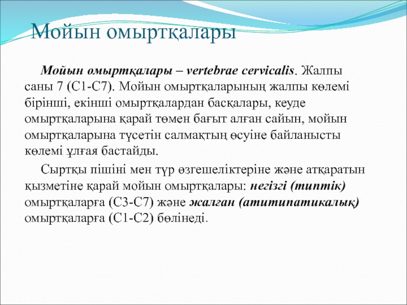 Мойын омыртқалары – vertebrae cervicalis. Жалпы саны 7 (С1-С7).