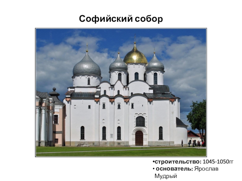 Софийский соборстроительство: 1045-1050гг основатель: Ярослав Мудрый местоположение: Новгород