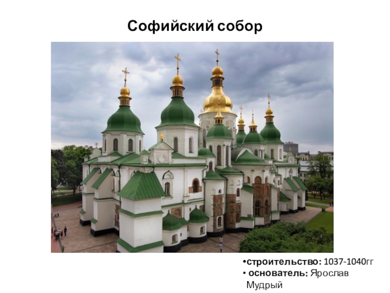 Софийский собор строительство: 1037-1040гг основатель: Ярослав Мудрый местоположение: Киев