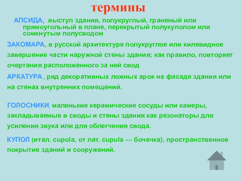 ЗАКОМАРА, в русской архитектуре полукруглое или килевидное завершение части наружной стены здания; как правило, повторяет очертания расположенного за ней свод