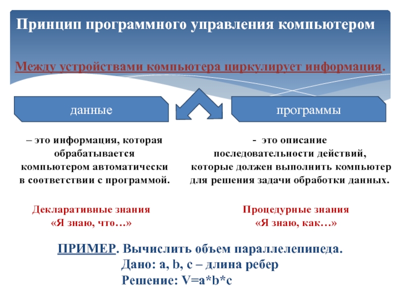 ПРИМЕР. Вычислить объем параллелепипеда.