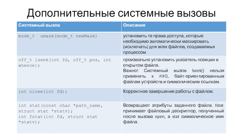 Слайд 15Параметр fd является файловым дескриптором, полученным с помощью системного вызова