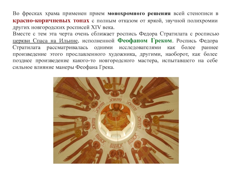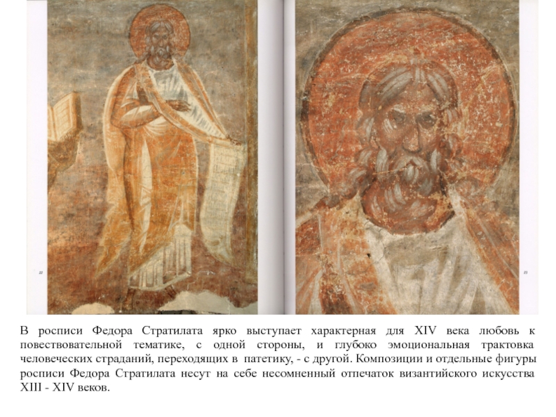 Слайд 10В росписи Федора Стратилата ярко выступает характерная для ХIV века