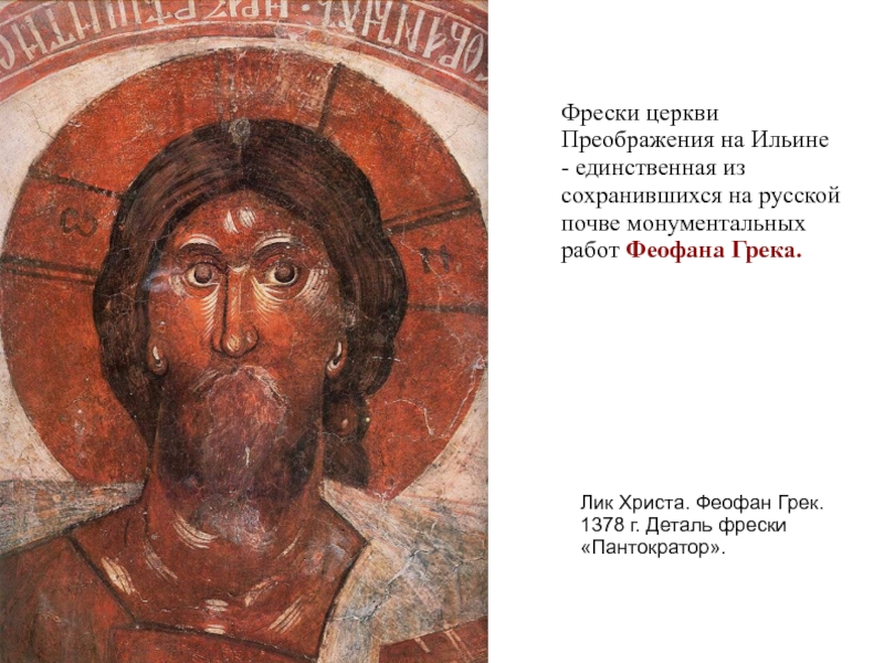 Слайд 20Феофан Грек. 1378 г. Фрагмент фрески «Пантократор» в куполе. Церковь