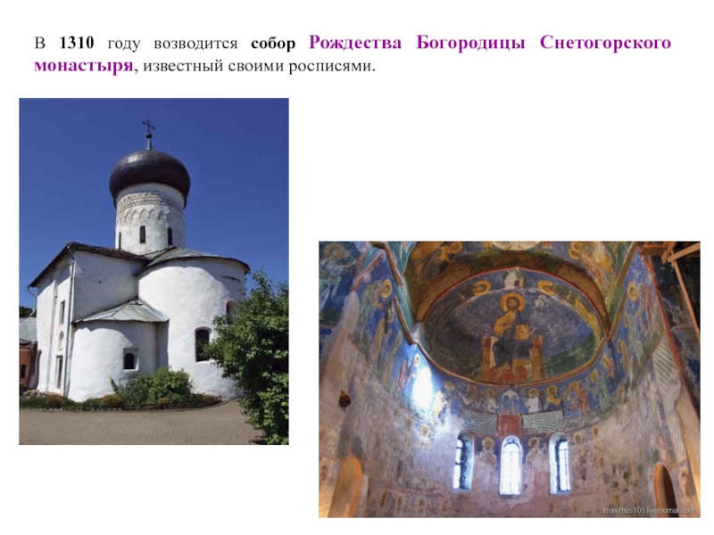 Слайд 34В 1310 году возводится собор Рождества Богородицы Снетогорского монастыря, известный
