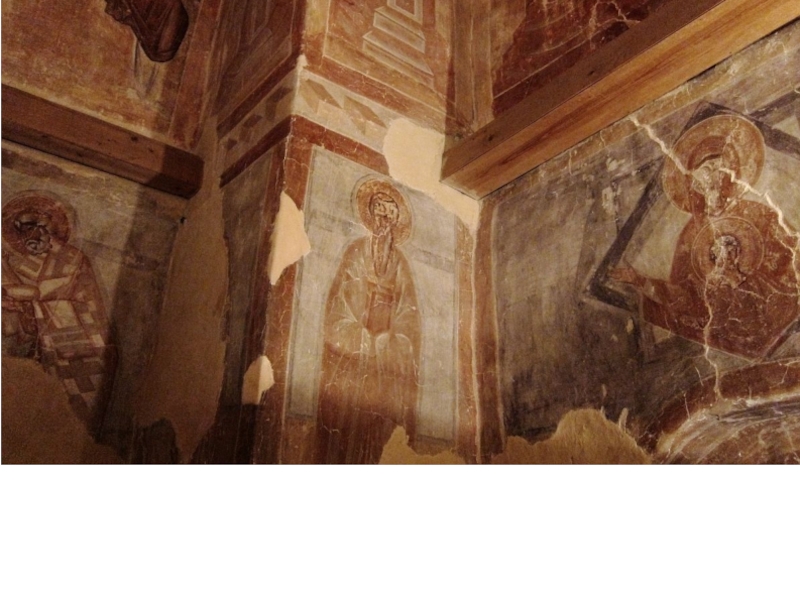 вокруг барабана и апсид, стены украшаются вставными каменными крестами, нишами