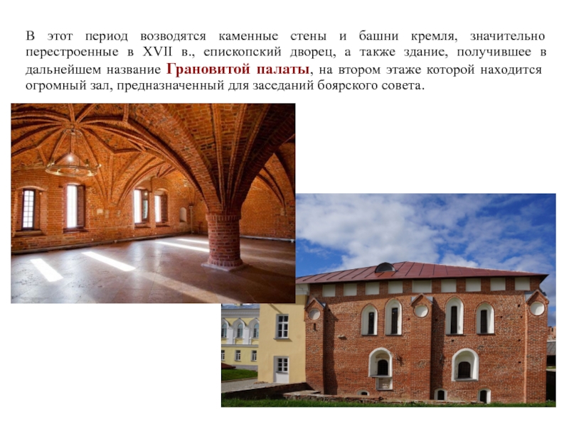 Слайд 25В этот период возводятся каменные стены и башни кремля, значительно