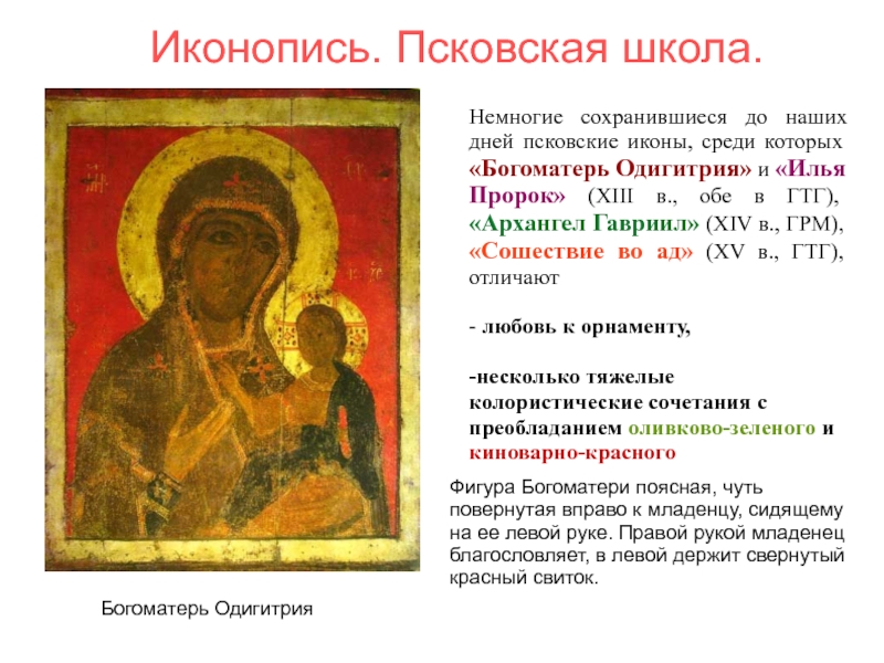 ГТГ), «Архангел Гавриил» (XIV в., ГРМ), «Сошествие во ад» (XV в., ГТГ), отличают