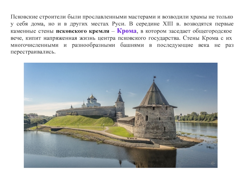 Слайд 33Псковские строители были прославленными мастерами и возводили храмы не только