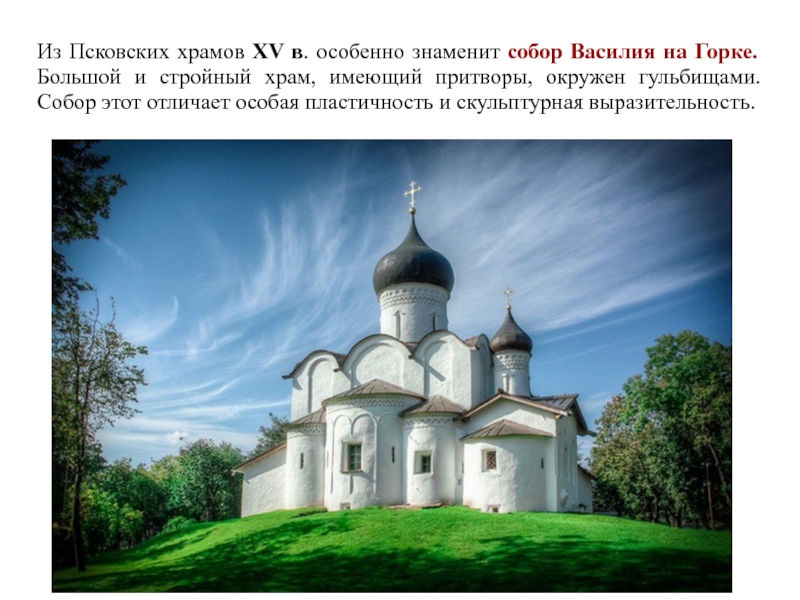 Слайд 37Из Псковских храмов XV в. особенно знаменит собор Василия на