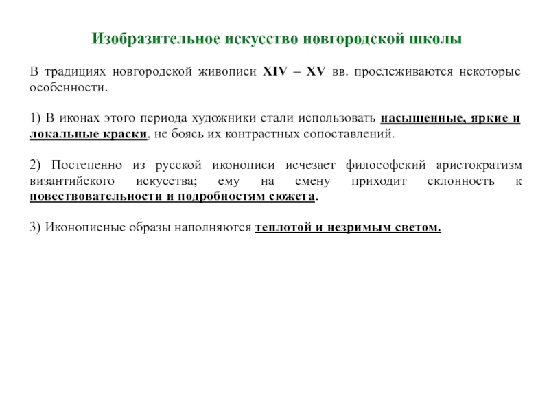 2) Постепенно из русской иконописи исчезает философский аристократизм византийского искусства; ему на смену приходит склонность к повествовательности и подробностям сюжета.