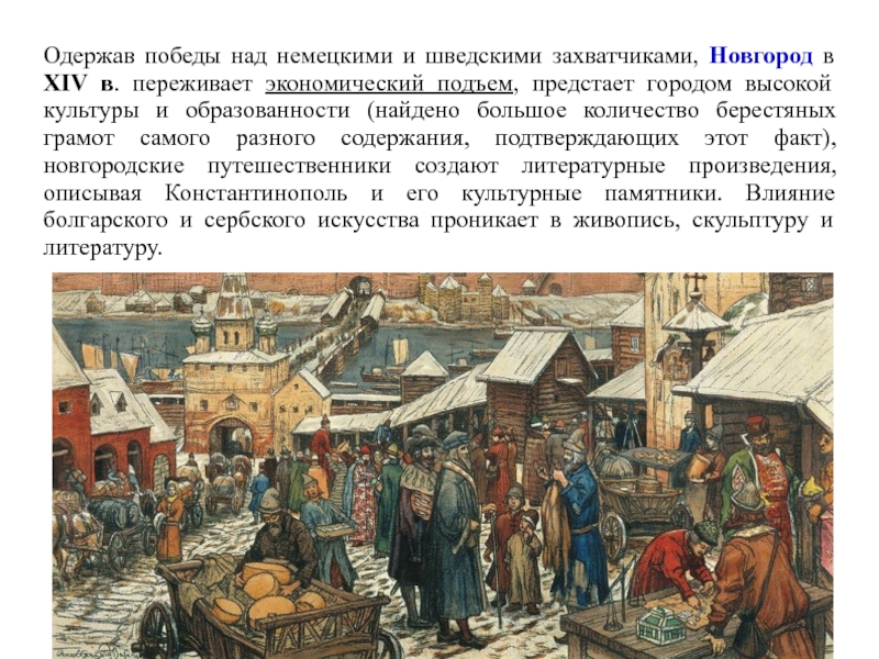 Слайд 5Одержав победы над немецкими и шведскими захватчиками, Новгород в XIV
