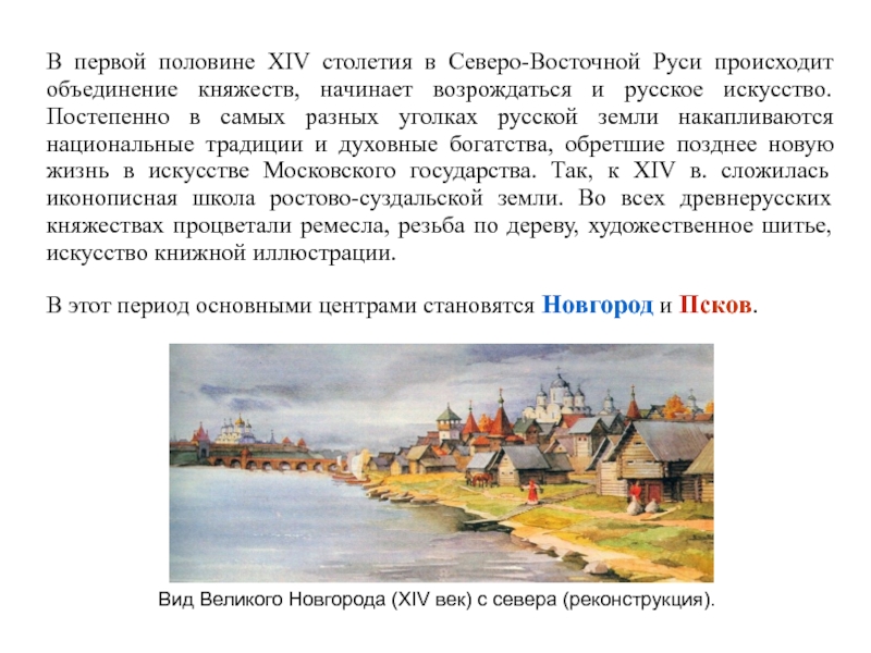 княжеств, начинает возрождаться и русское искусство. Постепенно в самых разных