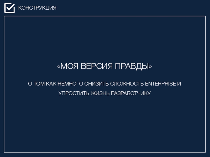 ПРЕДЛАГАЮ ВСЕМ НА ВРЕМЯ ДОКЛАДА ПОБЫТЬ НЕМНОГО В РОЛИ АРХИТЕКТОРА