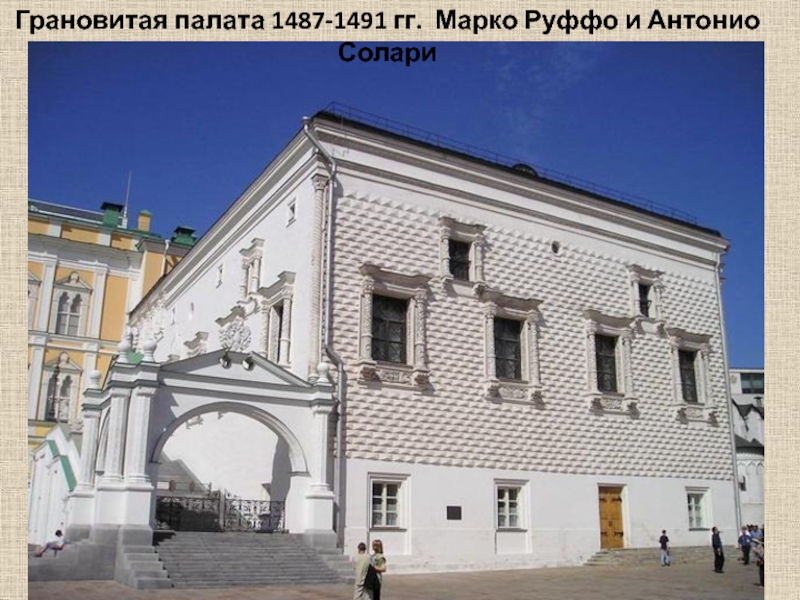 Слайд 13Грановитая палата 1487-1491 гг. Марко Руффо и Антонио Солари